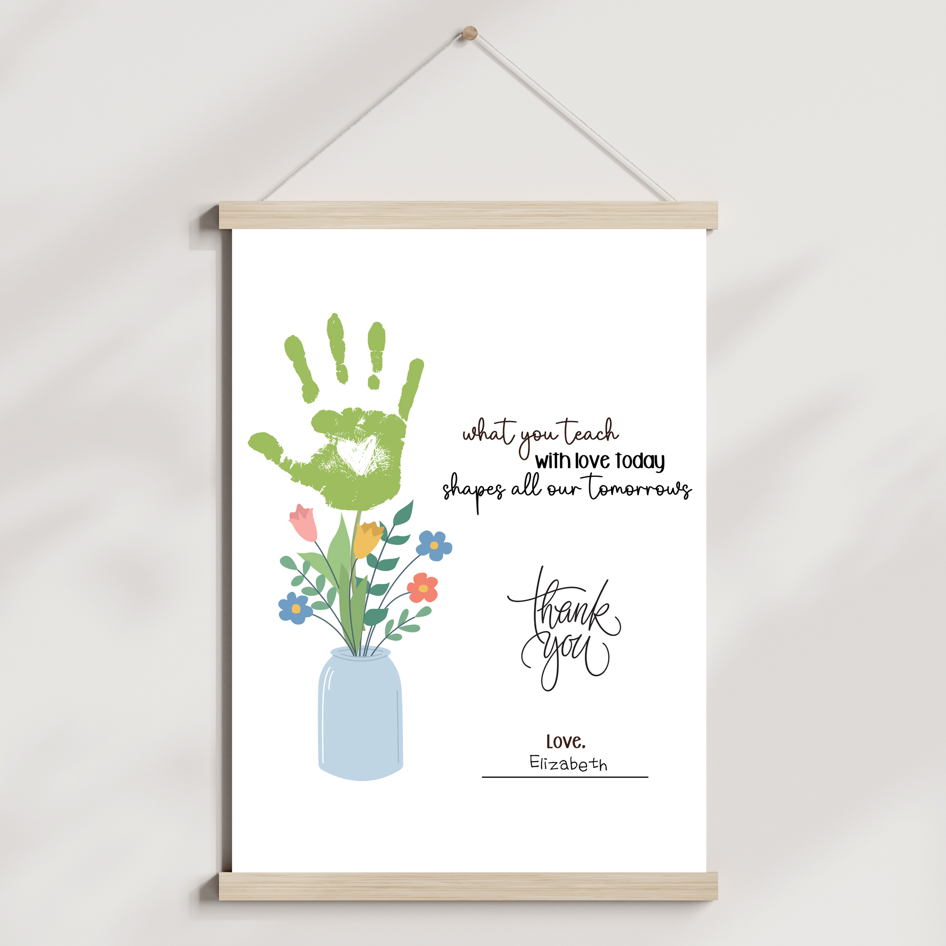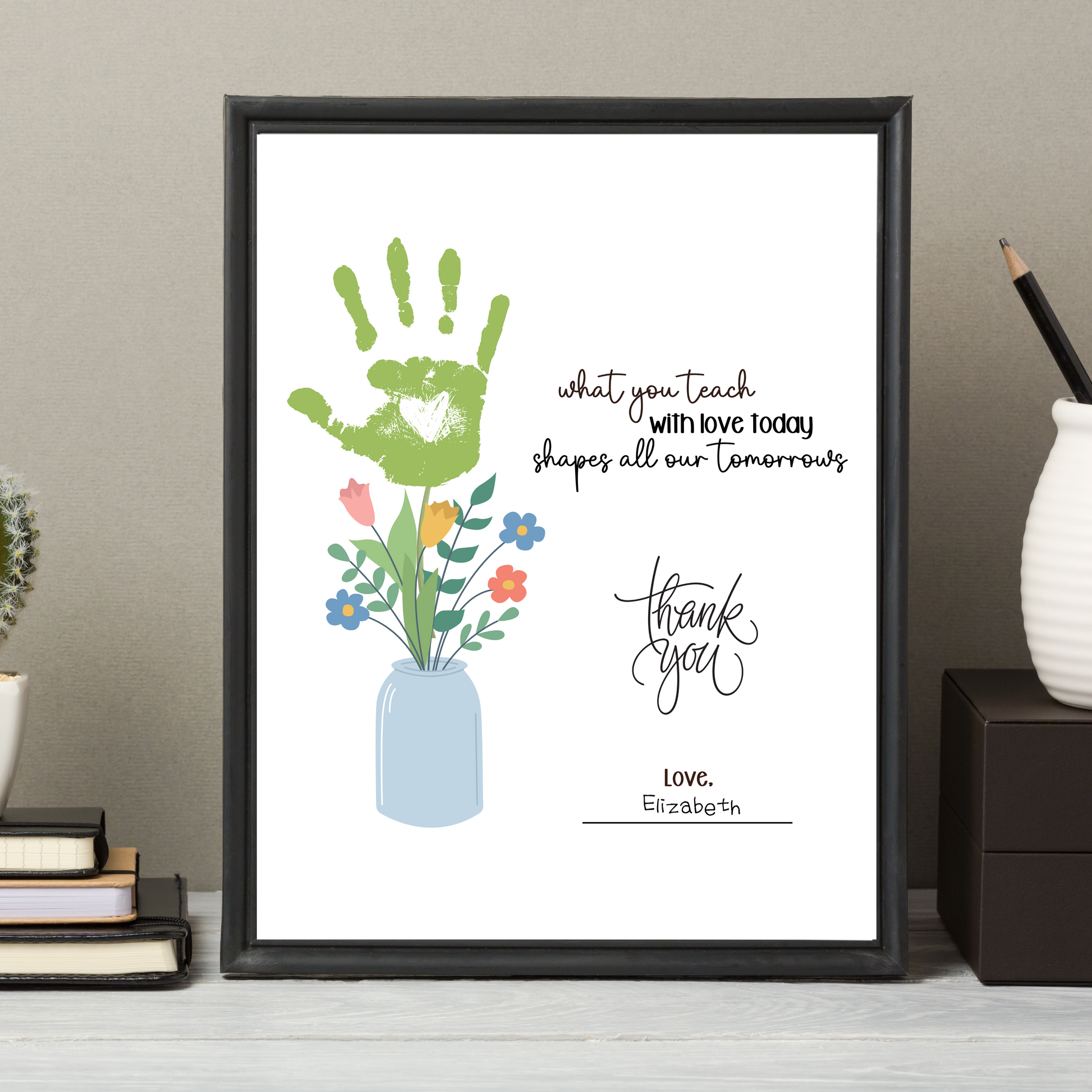 Teacher Appreciation Handprint Craft Kids Printable, DIY Gift Keepsake Flower Art