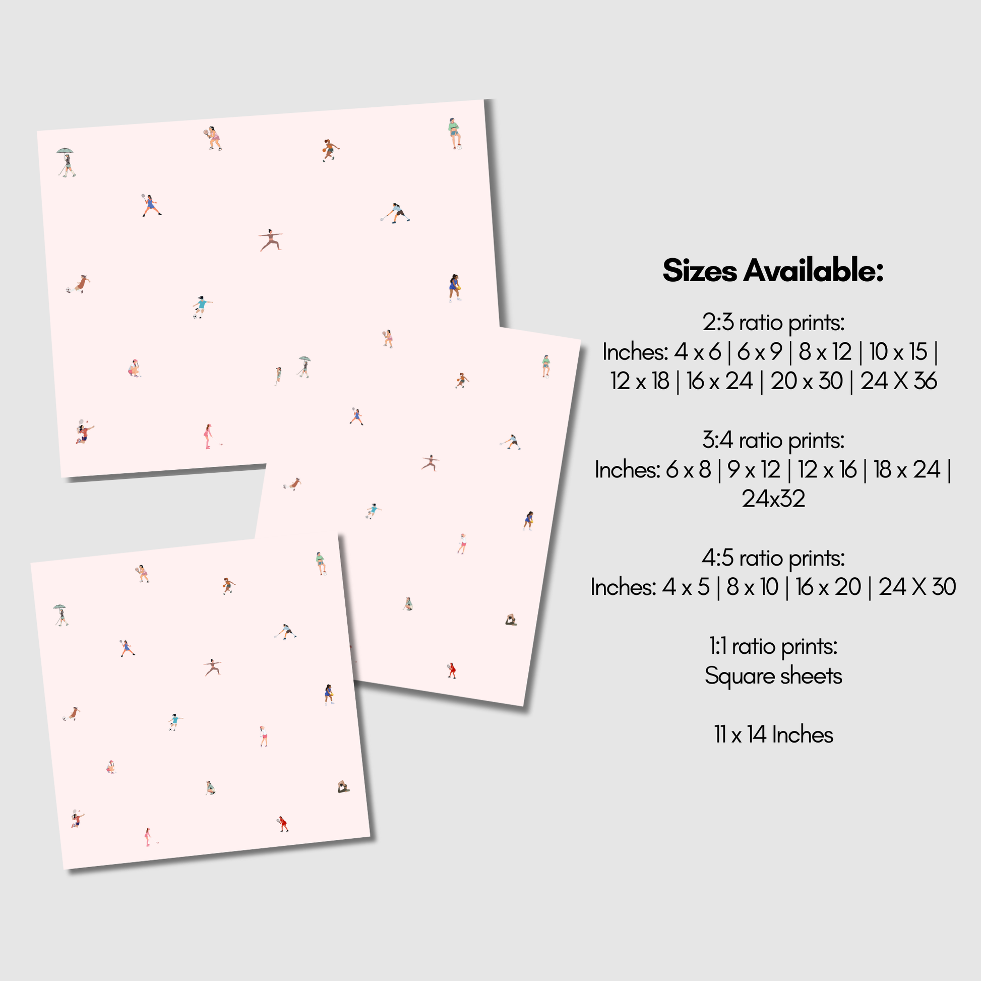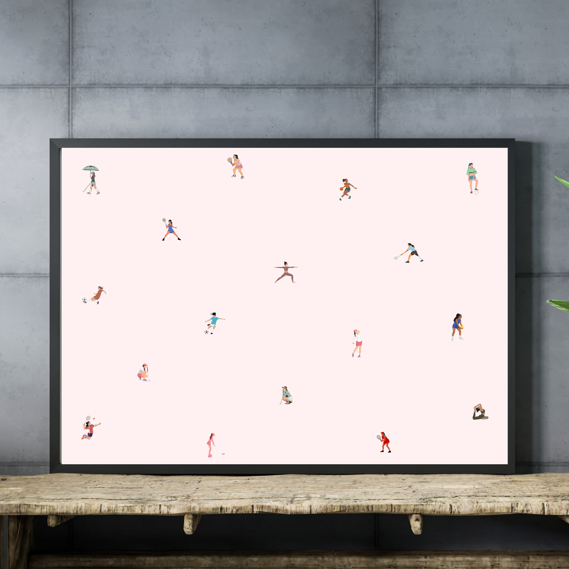 Tiny Female Sports Players Print Art Gift Wall Decor