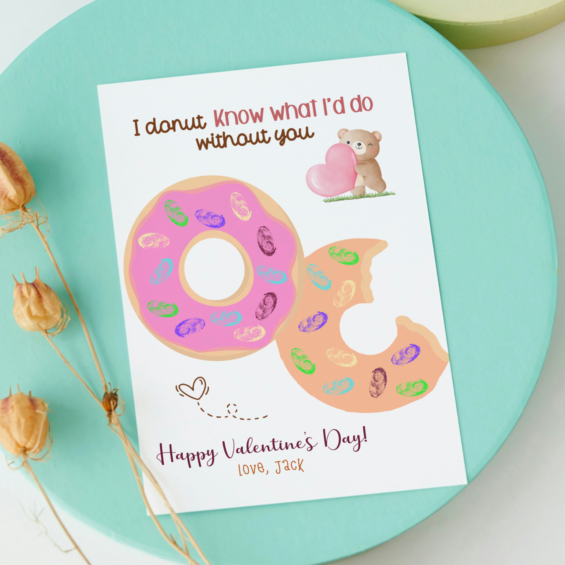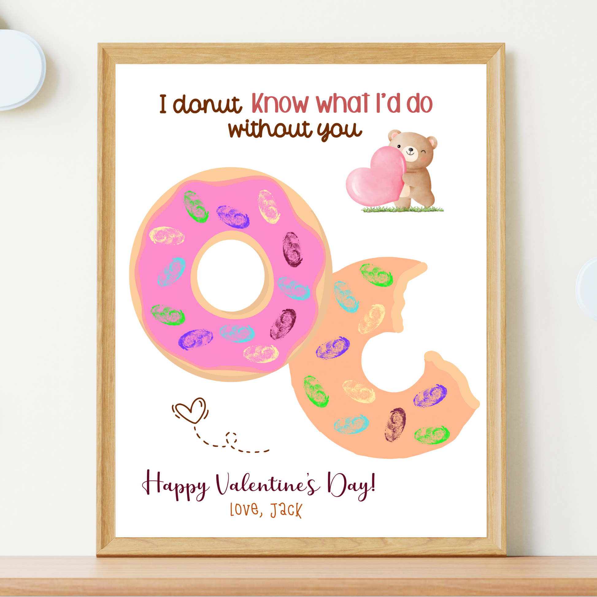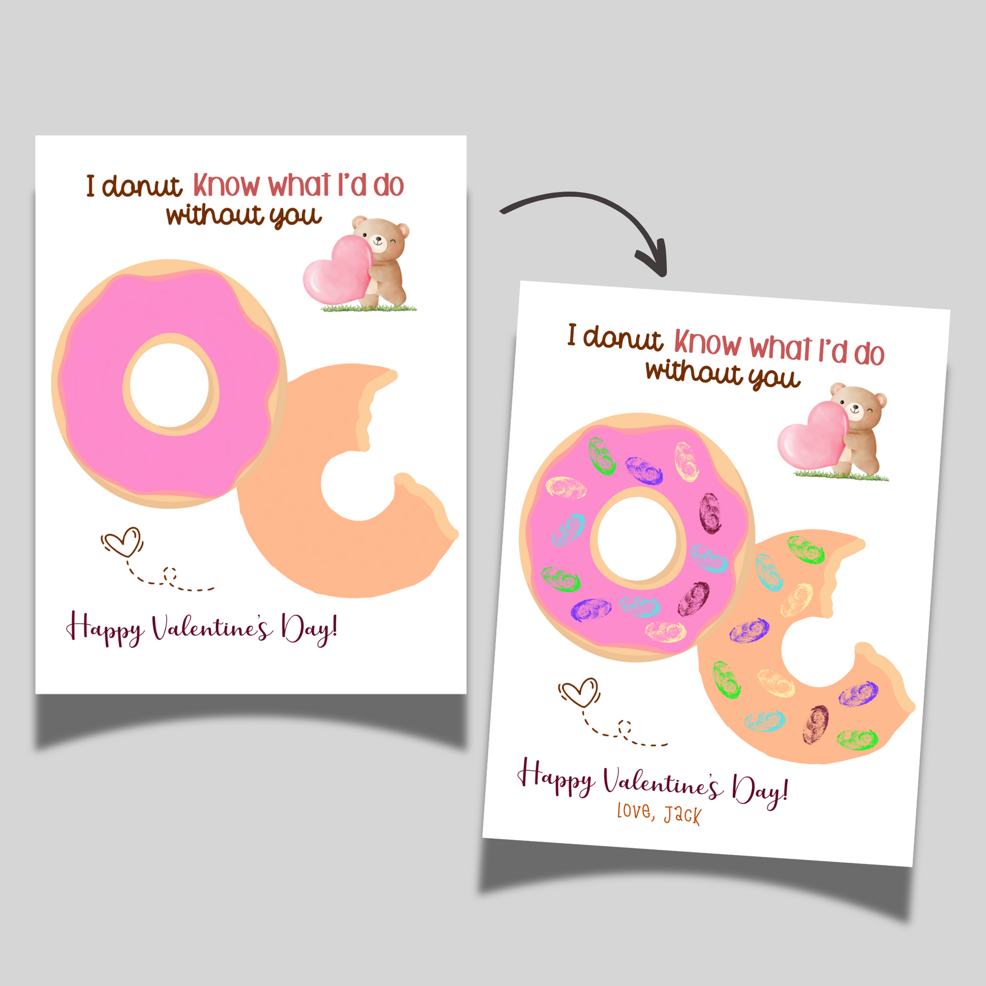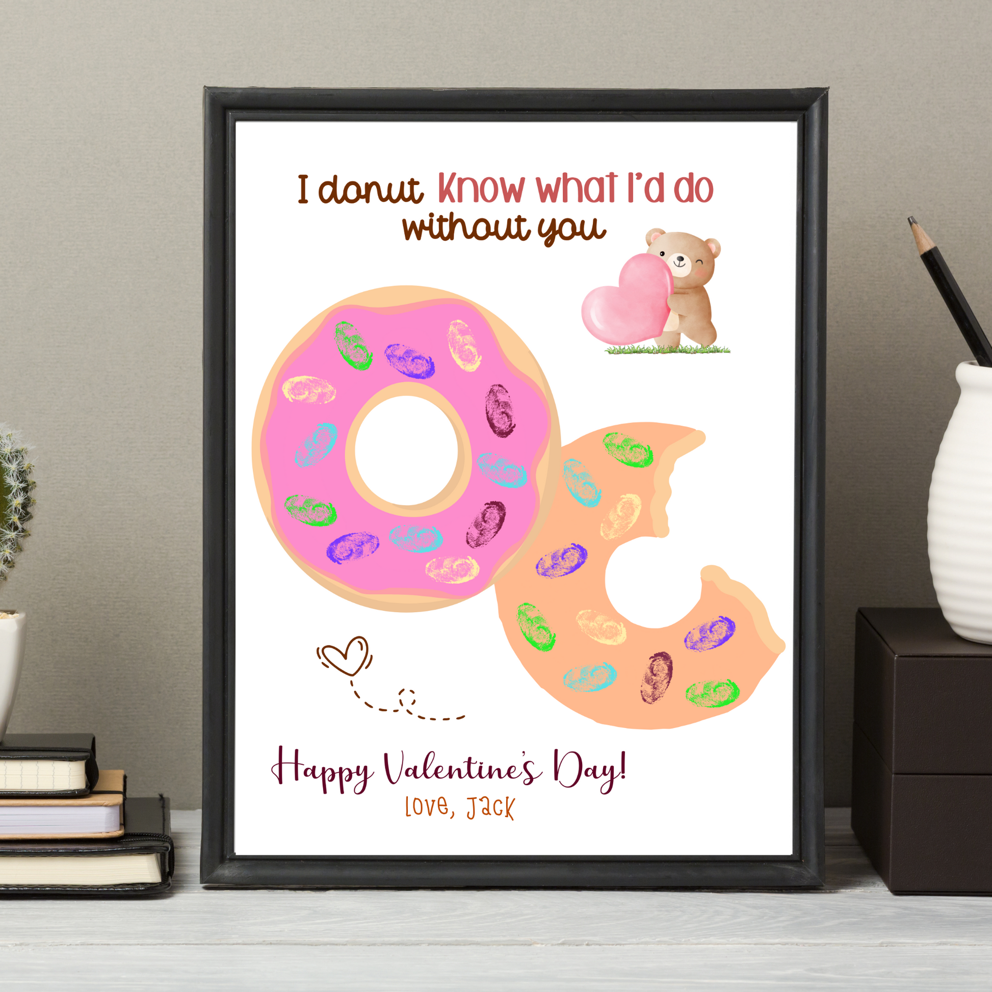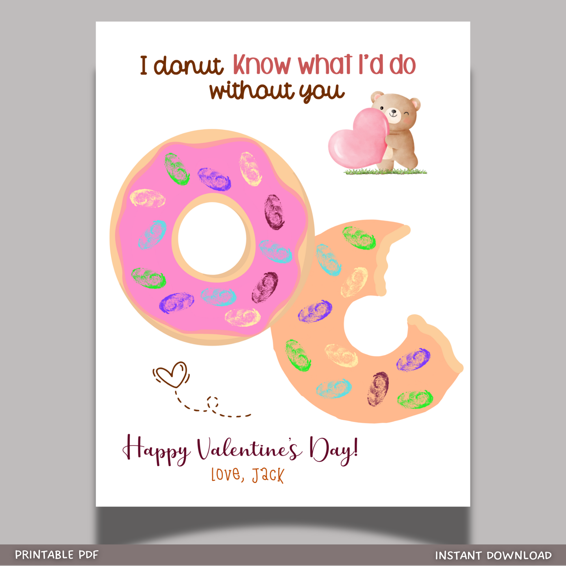 Valentines Fingerprint Holiday Crafts Printable, DIY Donut Art for Kids