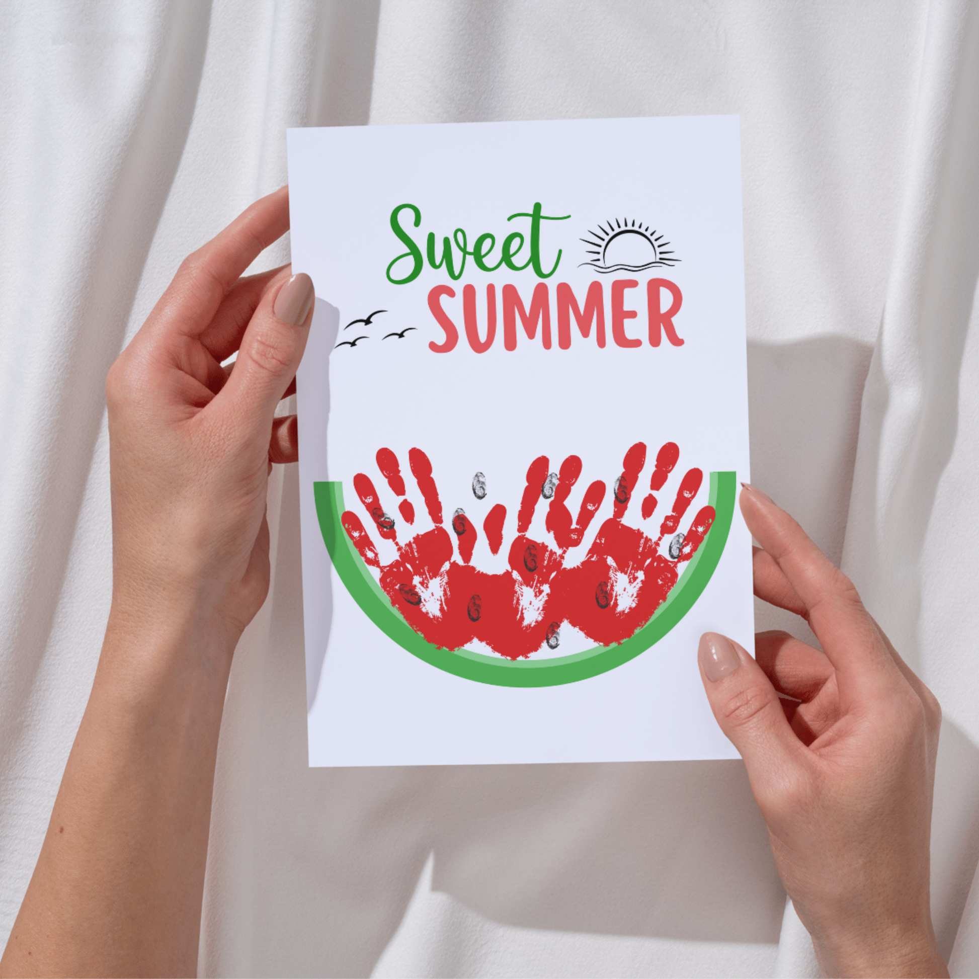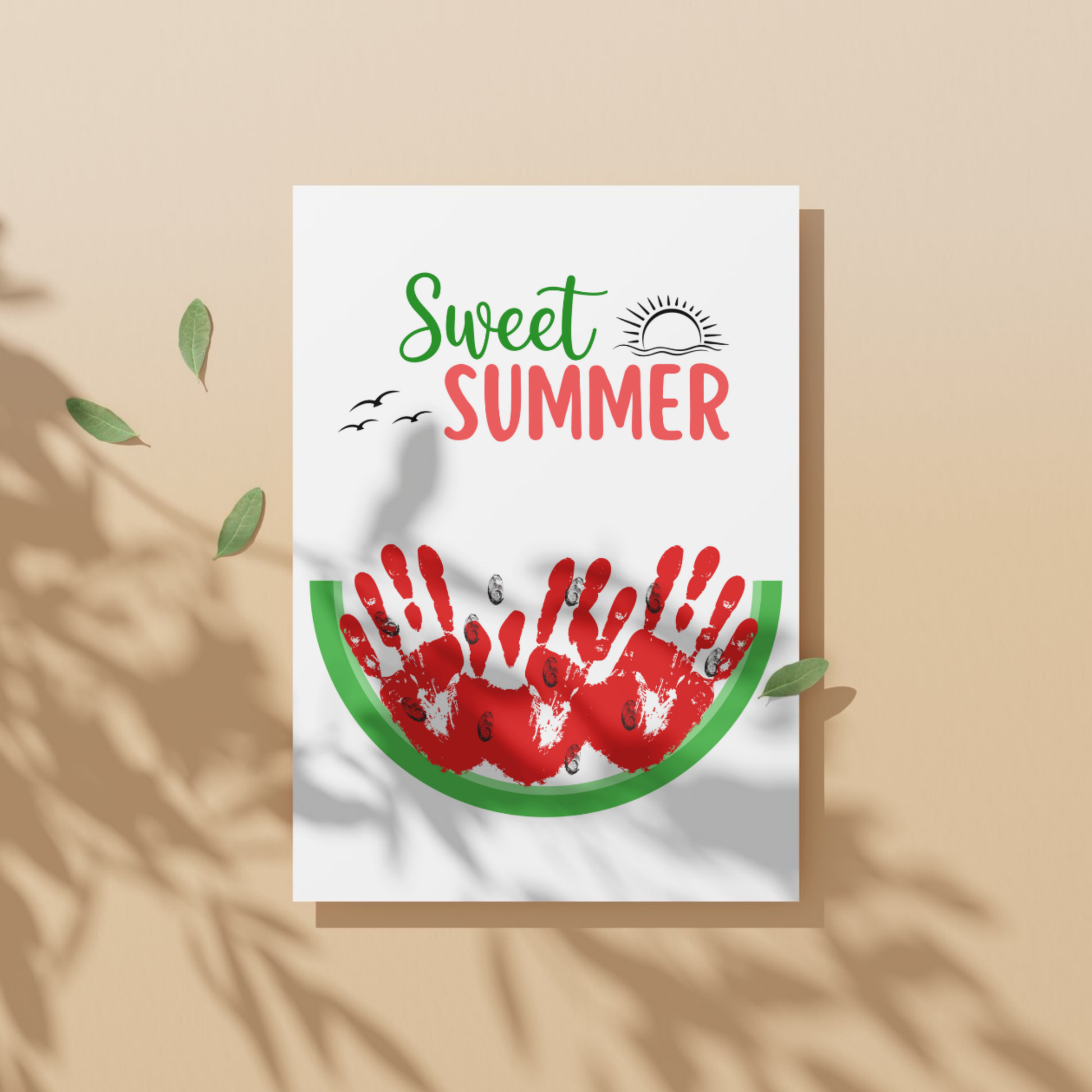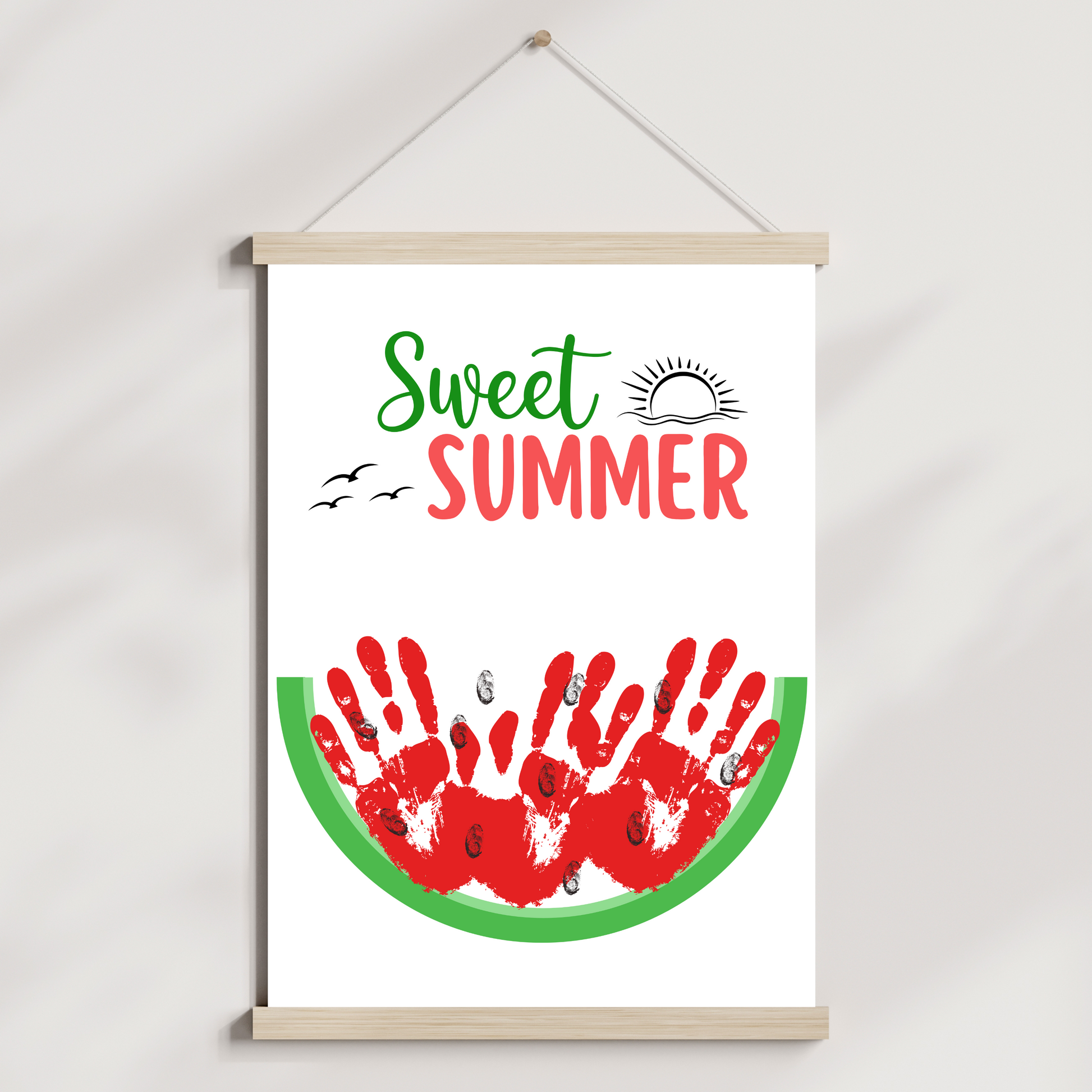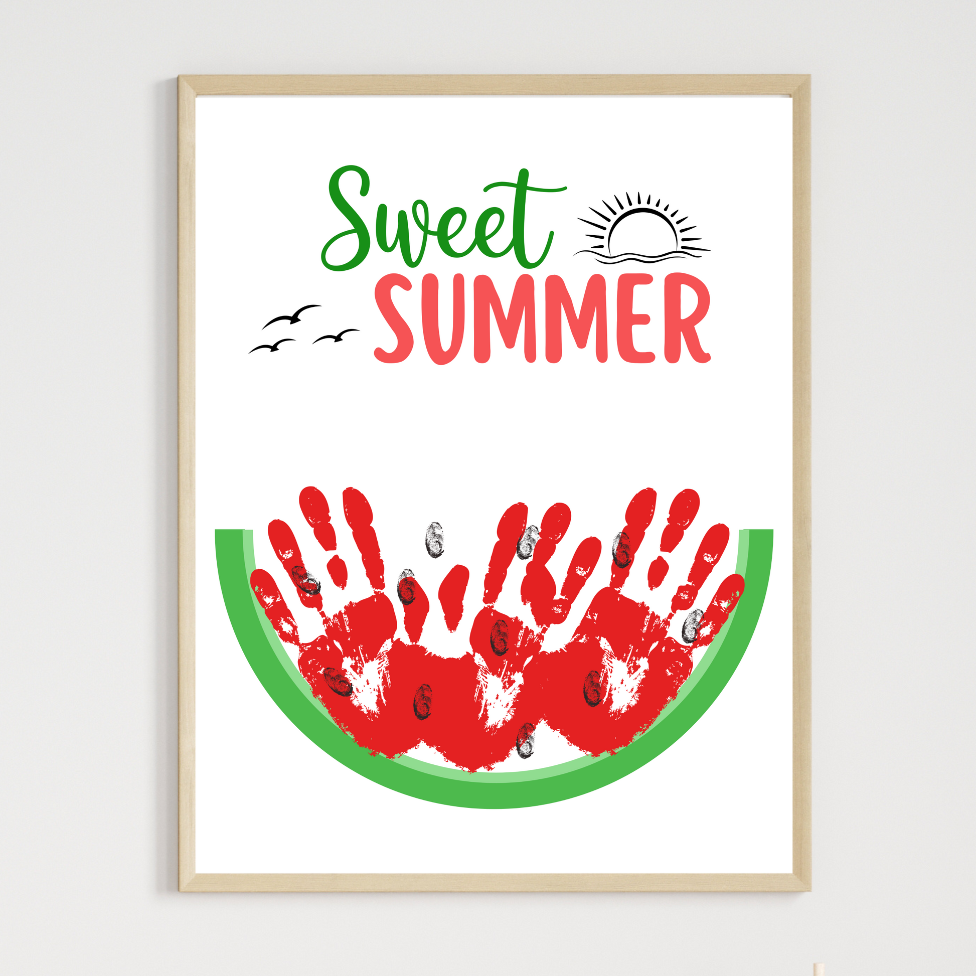 Add a splash of sunshine and sweetness to your summer with this instant download – a fun and easy keepsake that turns your little one’s handprint into an adorable slice of summer! Just print, paint, and press your child’s hand to create a juicy watermelon slice that’s as unique as they are!