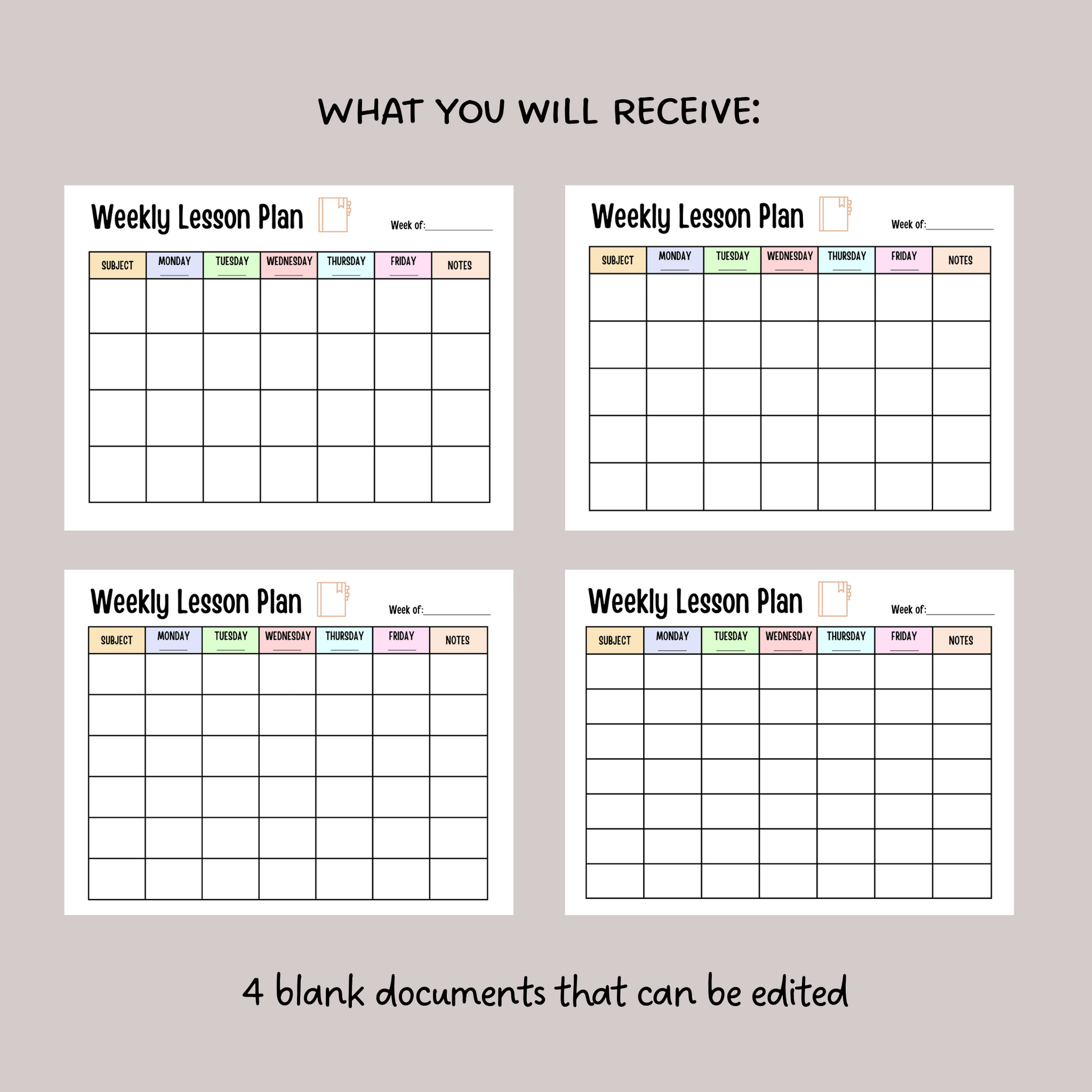 Weekly Lesson Plan Printable, Editable School Planner Schedule