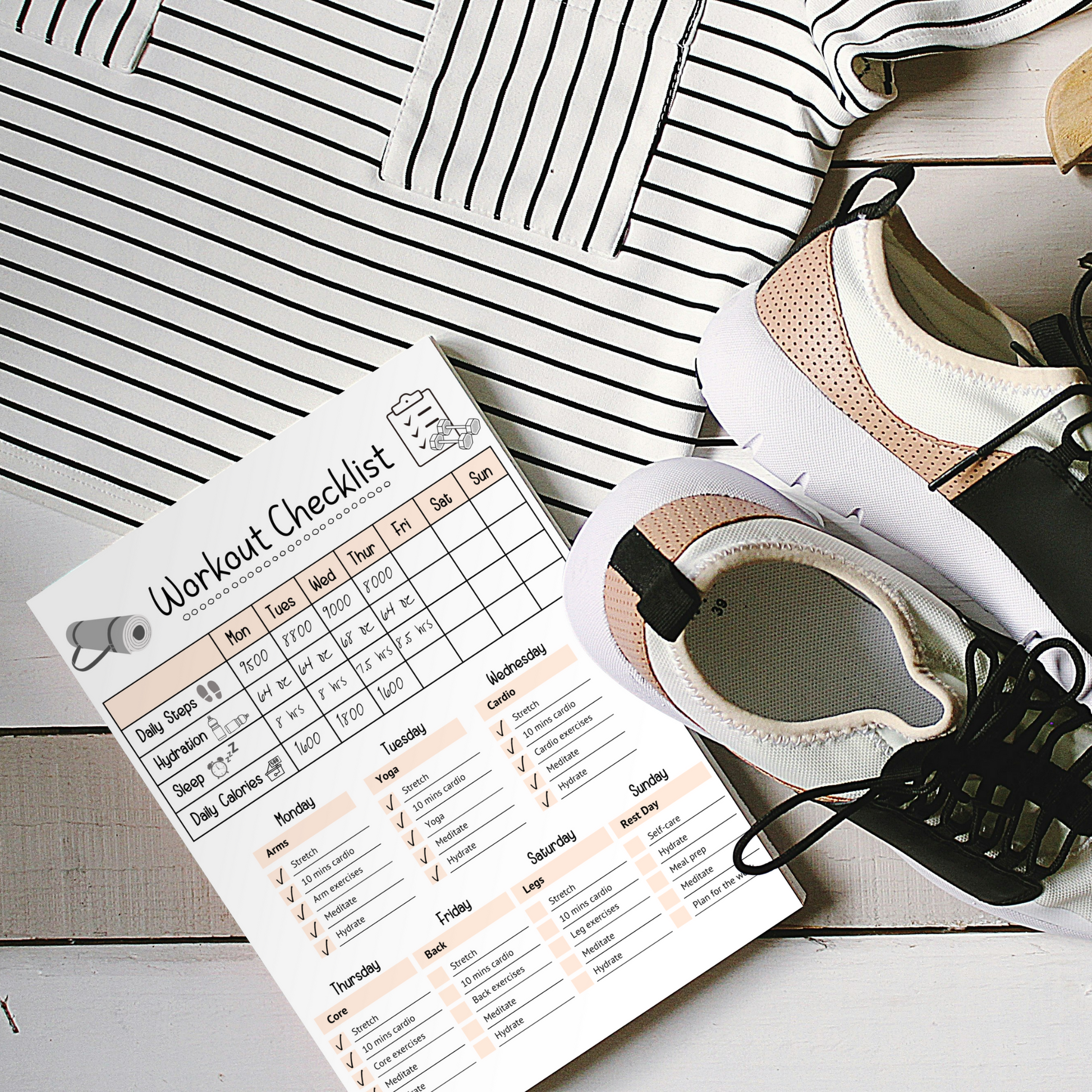 This editable and printable simple daily workout checklist/ routine chart in an instant digital download. It is perfect for tracking and planning your workouts.